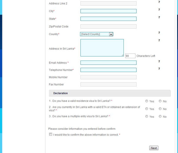 在斯里兰卡的地址就找一家你要住的酒店(还没有预订没关系),把地址写上即可。