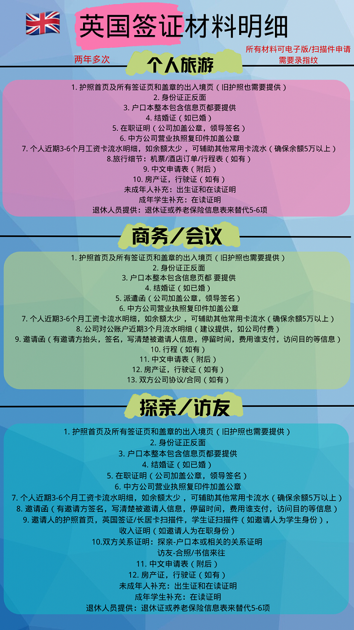 备注:英国签证申请必须本人亲自到签证中心提交材料并打指膜,5岁以下(不包括5岁)小朋友不需要到签证中心按指模,同行人代交资料即可。